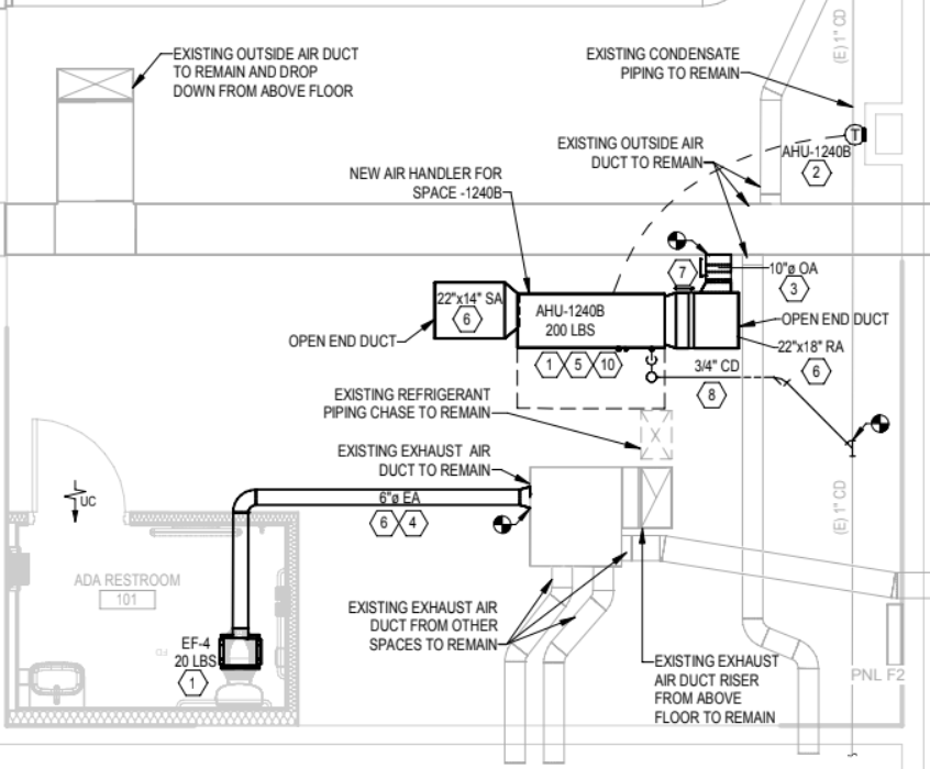 - During the final design phase, the client requested to upsize the AHU from 3.5 to 5 tons. The design also had to meet Florida Building Code (8th Edition, 2023) and National Electrical Code (NEC 2020) requirements without compromising cost efficiency. National MEP Engineers incorporated the larger AHU while applying full code-compliant design criteria for ventilation, condensate slope, fire stopping, and seismic restraint.