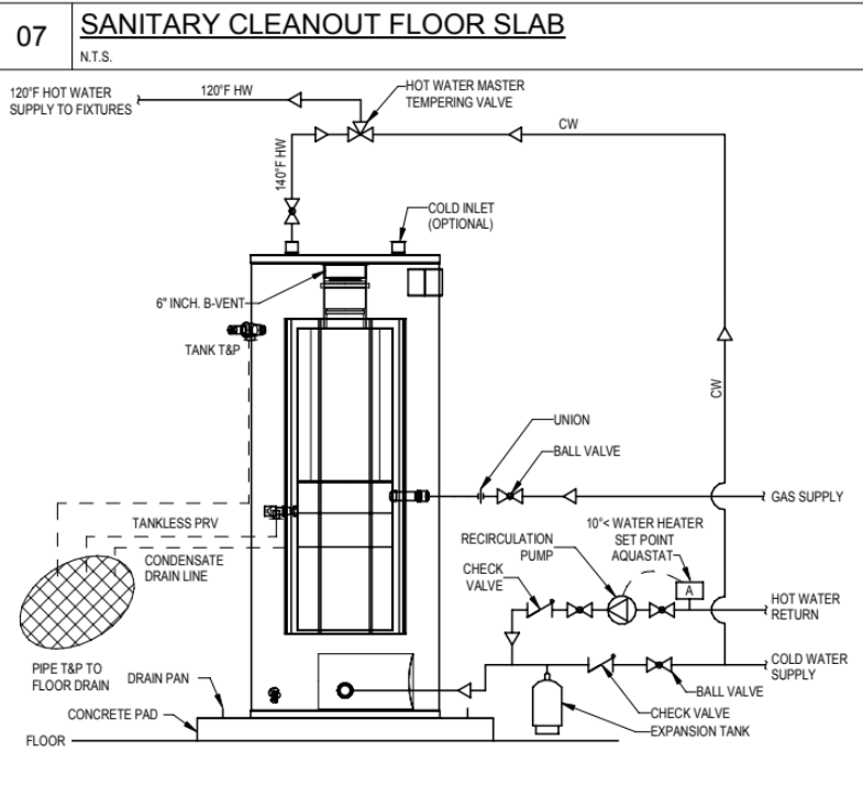 In early project discussions, National MEP Engineers proposed a more streamlined and health-compliant strategy: using a single high-capacity water heater capable of heating water up to 140°F, along with thermostatic mixing valves to regulate different temperature loops for various service areas. After several technical clarifications and revisions, the client adopted this recommendation, eliminating the need for multiple heaters while improving health safety and reducing overall system costs.